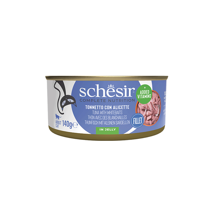Schesir, diğer tam mamalardan farklı olarak buharda pişirilmiş ve özenle seçilmiş ton balığı filetolarından oluşan, jöle veya et suyu bazlı gerçek öğünler sunar.